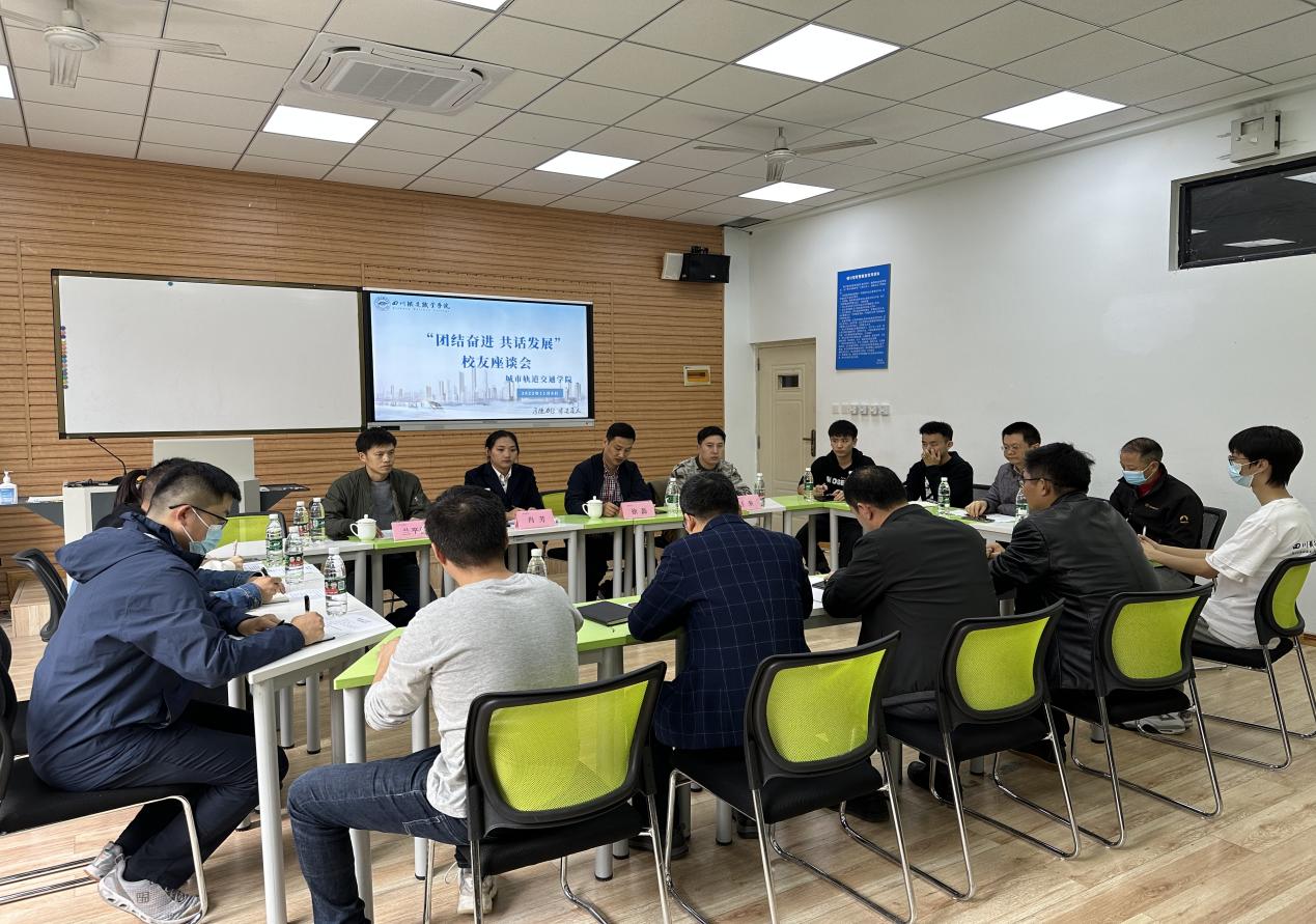 三、“团结奋进 共话发展”校友座谈会 当日下午2点30,城市轨道交通学院邀请优秀校友们在1号教学楼1211教室举行“团结奋进,共话发展”校友座谈会,学校党委副书记刘昊君同志、城市轨道交通学院党政负责人、教师代表、学生代表出席座谈会。