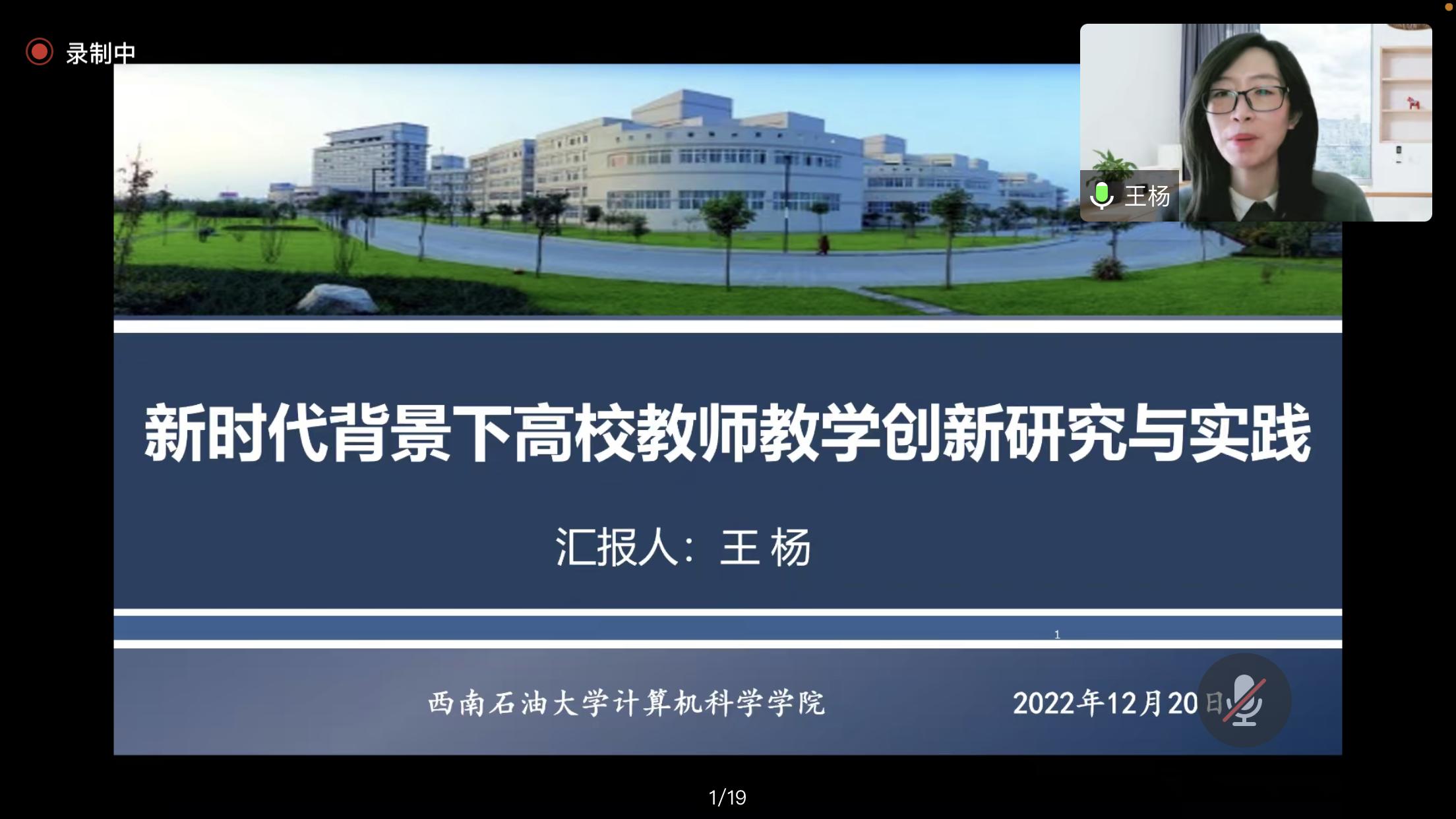 本期主讲嘉宾是西南石油大学计算机科学学院院长王杨。王杨教授围绕“新时代背景下高校教师教学创新的研究与实践”主题,从什么是教学创新、如何发现凝练问题、如何针对一门课程开展教学创新三个方面,以自身教学创新的真实经历,向教师们讲述了优质课程资源建设、课程再造、学生赋能、教师赋能的经验做法。