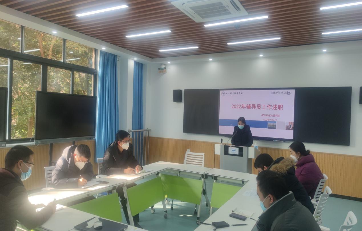 根据《四川铁道职业学院辅导员考核实施细则》,为进一步加强辅导员队伍建设,2023年1月6日于1207召开城市轨道交通学院2022年度辅导员年度考核述职报告会。会议由城市轨道交通学院党总支书记王文杰主持,学院院长杨凤、学院教研室主任杜亚林、学院办公室主任郭尧鹏、学院全体专职辅导员老师参加。