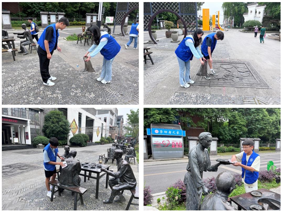 五四的青春号角还在耳边萦绕,青春的梦想还在远方,但始终根植于脚下的土壤。安德作为中国川菜文化城,具有丰富的川菜文化印记。本次活动以安德川菜文化体验街为中心,将安德步行街道上的雕像、街面作为清洁目标。活动过程中,同学们自觉分配任务,撸起袖子,不怕脏,不怕累,发扬吃苦耐劳的劳动精神,圆满完成工作任务。