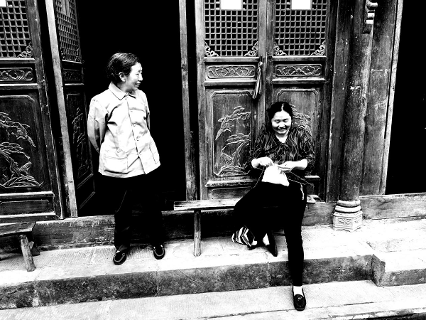 小小水磨镇里,悠哉游哉的织着手中不知是为谁而编织的毛线,和身旁的邻里说笑,嘴边扬起一抹质朴的微笑,画面着实让人心安与向往。——通信20T1黄奇晨