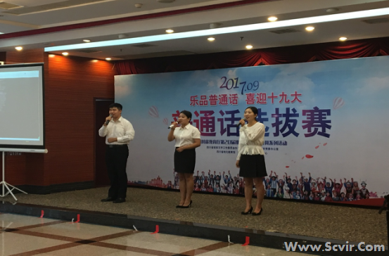 2017年9月13日,成都市花园宾馆,四川省教育厅举办了“乐品普通话、喜迎十九大”语言表演大赛。我院李珂钰老师和学生代表杨洋、张俊颜以高质量的配乐诗朗诵《写给未来的你》夺得一等奖。 这次比赛是省教育厅为迎接党的十九大胜利召开,提升干部普通话水平和语言交流能力,在第20届全国推广普通话宣传周组织所属各部门和直属事业单位开展的一次重要活动。我院公教部在接到任务后积极筹备大赛,与城轨系李珂钰老师一起精选参赛方案,在选篇上紧扣“大力推广和规范使用国家通用语言文字,自觉传承弘扬中华优秀传统文化”活动主题,将师生同台演绎《写给未来的你》作为我院参赛作品,经过精心的准备和训练,终于闪亮登场。 |