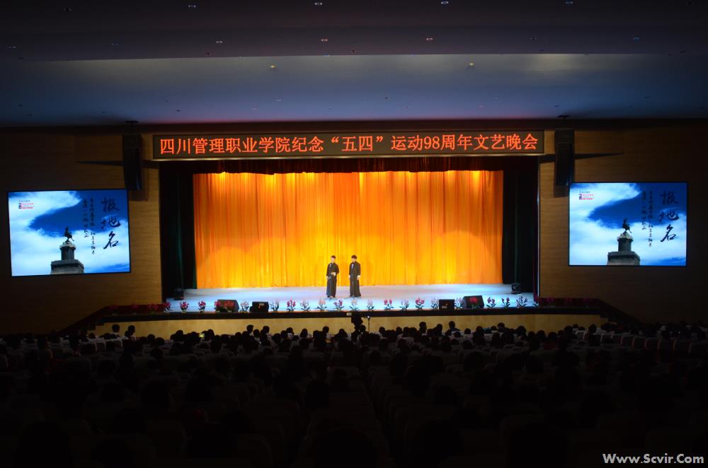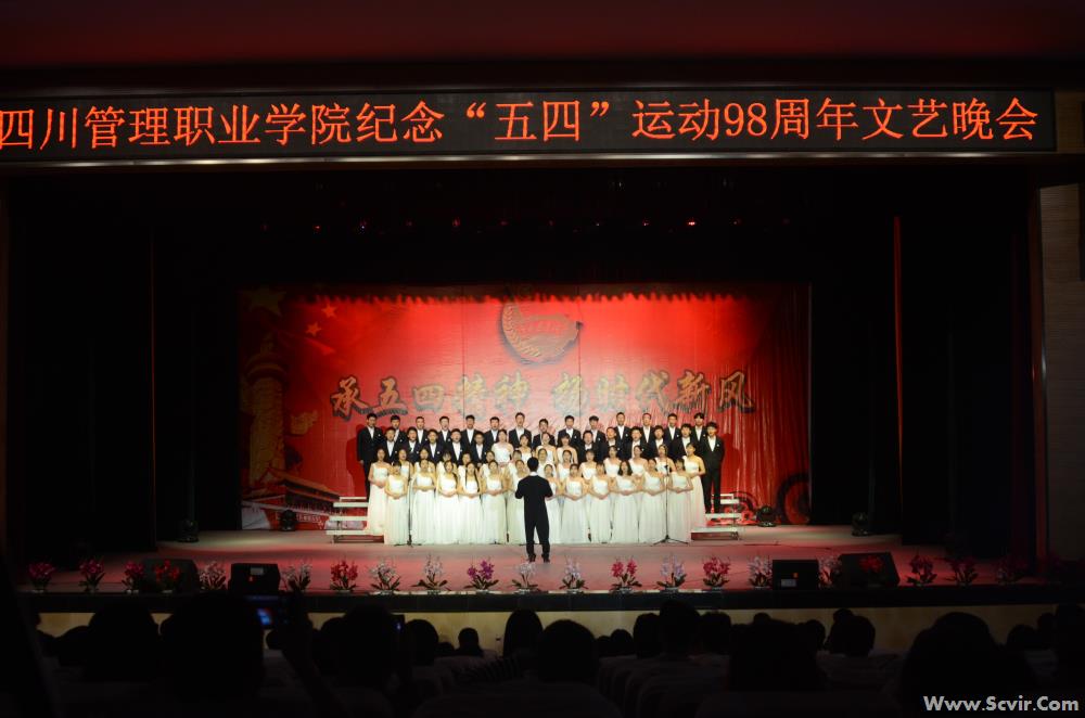 ——我院成功举办纪念“五四”运动98周年文艺晚会 5月4日晚7点,我院在安德校区大礼堂举办了纪念“五四”运动98周年文艺晚会。晚会特邀省教育厅副厅级巡视员周雪峰老师作为嘉宾莅临,学院领导、全院青年教职工及一千余名学生代表共同观看了晚会。 晚会以“承五四精神,扬时代新风”为主题,展示了我院青年昂扬向上的精神风貌。热情四溢的歌舞表演《青春舞曲》、活灵活现的小品《川妹子进城比赛》、反映我院学生春运社会实践的小品《春运》、以史为据的舞蹈《八女投江》、情景朗诵表演《五月的辉煌》等众多节目轮番上演,学院老师和学生还共同表演了《以人民的名义》等节目,台下观众掌声、欢呼声此起彼伏。 晚会中,特邀嘉宾周雪峰老师带来了诗歌朗诵《致橡树》、《我爱这土地》,并与我院魏川老师激情演绎了二重唱《游击队之歌》。周雪峰老师数十年来将满腔热情倾注于教育事业,在舞台上用一番激情激励青年、赞美青春、歌唱祖国,深深震动了我院学子。一名同学在晚会中悄悄传给了周雪峰老师一封感谢信,写到“您刚才的表演向我展示出了一种态度,一种做任何事都应该认真、用心的态度。我想把握现在,无论对自己的生活还是学习,我也应该同样持一份好的态度。谢谢您!” 最后,全体观众起立合唱《共青团团歌》,晚会圆满落下帷幕。我院学子将发扬“爱国、进步、民主、科学”的“五四精神”,积极践行社会主义核心价值观,勇担属于我们这一代的历史使命。