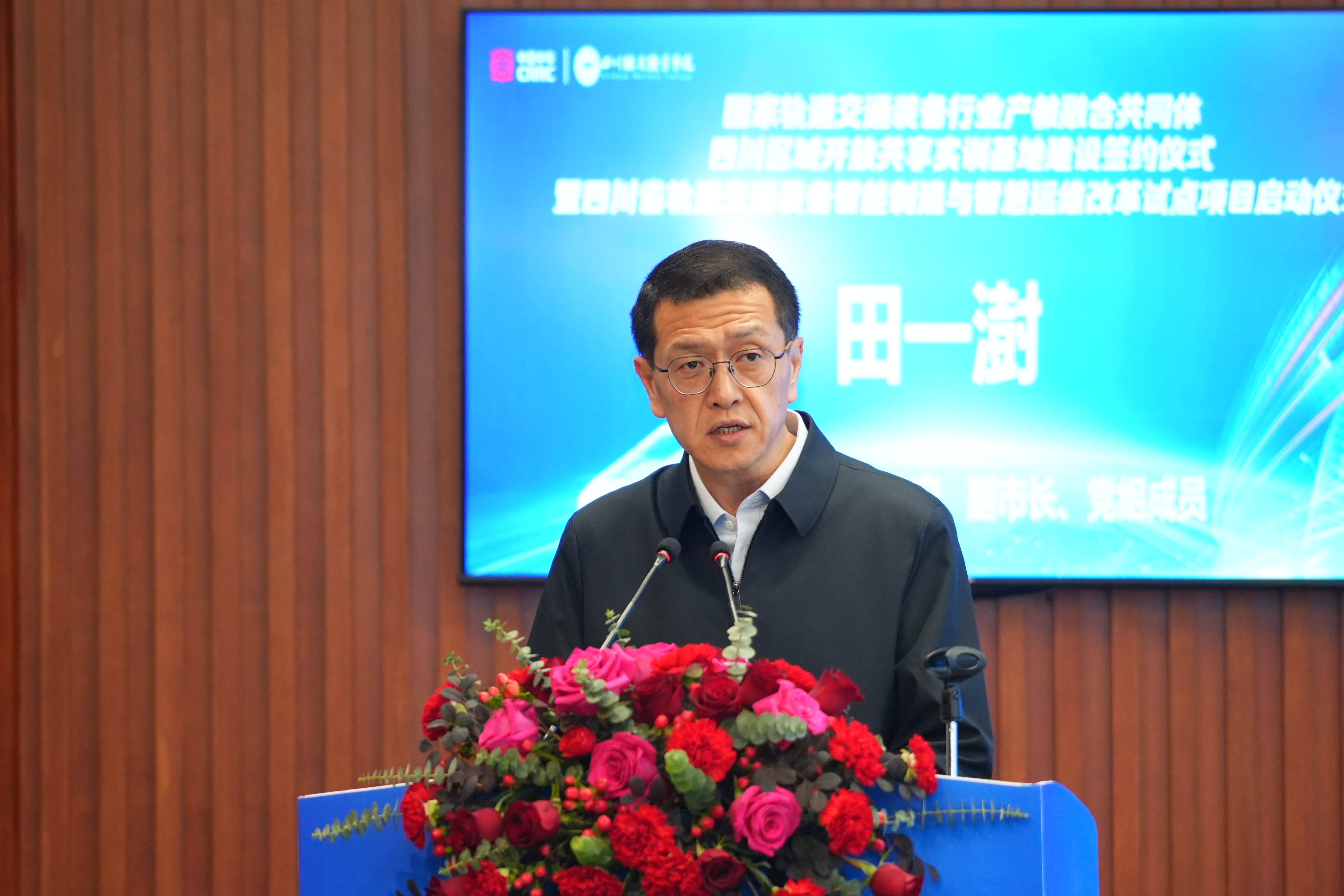 为深入贯彻落实习近平总书记关于教育的重要论述和对产教融合工作作出的重要指示精神,努力打造具有轨道交通装备行业产教融合共同体标杆示范,为轨道交通装备行业加快发展新质生产力夯实人才根基,12 月 26 日,国家轨道交通装备行业产教融合共同体四川区域开放共享实训基地建设签约仪式暨四川省轨道交通装备智能制造与智慧运维产教融合改革试点项目启动仪式在眉山举行。中国中车集团有限公司党委委员、工会主席赵虎,中共四川省委教育工委委员、教育厅党组成员、副厅长石静,眉山市人民政府党组成员、副市长田一澍,学校党委书记贺兆轩、校长赖芳等出席签约仪式。 中国中车集团有限公司党委委员、工会主席赵虎讲话 赵虎在讲话中指出,国家轨道交通装备行业产教融合共同体是首个国家级行业产教融合共同体,是教育部和中国中车集团共同贯彻落实党中央、国务院关于深化现代职业教育体系改革的重要举措。四川区域开放共享实训基地的签约,对于深化校企合作、促进教育链、人才链与产业链、创新链的有机衔接,具有里程碑重要的意义。希望共享基地的各成员单位同心同向,共创共赢,将实训基地打造为赓续红色基因、传承红色文化的 “示范校”;轨道交通装备行业原创技术的 “策源地”;轨道交通装备行业科技人才的 “孵化园”;推进形成新质生产力的 “动车头”。为轨道交通装备行业的转型升级提供更坚实的人才保障和智力支持。 中共四川省委教育工委委员、教育厅党组成员、副厅长石静讲话 石静指出,高铁已成为中国闪耀世界的一张亮丽“名片”,轨道交通装备是国家支持发展的战略性新兴产业,今天启动的共享实践基地项目,是推动国家轨道交通装备行业产教融合共同体在四川实体化运行的突破性项目,是纵深推进产教、跨界融合,实现产业报国的关键举措。她希望行业、学校、企业积极整合产业的优质资源、高水平学校的科技人才优势、职业院校高素质技能人才的培养特色,构建产学研用一体化的协同创新体系,推动行业人才培养、师资团队、产学研协同等全要素变革,推动区域产业技术前沿发展,促进教育链、人才链、产业链和创新链的有效衔接和深度融合,为服务、支撑四川现代产业发展做出更大贡献。 眉山市人民政府副市长、党组成员田一澍讲话 田一澍表示,示范项目的落地,不仅标志着国家轨道交通装备行业产教融合迈出了坚实的一步,更预示着眉山市经济发展将迎来崭新机遇和广阔前景,为地方经济持续增长提供有力支撑。下一步,眉山将加强与校企的沟通协作,共同推动校企合作向更深层次、更广领域发展,积极探索市域产教联合体的建设路径,通过整合政府、企业、学校等多方资源,构建协同育人新模式。 国家轨道交通装备行业产教融合共同体常务理事会秘书处副秘书长李志磊致辞 国家轨道交通装备行业产教融合共同体常务理事会秘书处副秘书长李志磊代表共同体单位致辞,他表示,共同体成立一年多来,聚焦职业教育 “五金” 新基建,先行先试、边破边立,探索形成以 “同心同向、共创共赢” 为价值观,以打基础、提能力、树标杆 “三步走” 为实施方略,以教材开发、实训基地建设、随企出海 “品字形” 工作布局为重点突破的“双同双共、三步一品”行业共同体建设模式,为轨道交通装备行业加快发展新质生产力奠定了人才根基。他希望共同体四川区域开放共享实训基地建设加快推进,为全力打造轨道交通装备行业产教融合共同体标杆示范,夯实轨道交通装备行业加快发展新质生产力人才根基作出应有贡献。 中车眉山车辆有限公司党委书记、董事长胡海滨致辞 中车眉山车辆有限公司党委书记、董事长胡海滨表示,公司将以四川区域产教融合共享基地建设、产教融合合作试点项目为切入点,与四川铁道职业学院等成员单位一同构建 “园-链-盟-群-院” 协同产教平台、积极践行“共同参与、共同建设”共享理念、全力打造国际化的 “中车眉山” 实训品牌、大力培育新时代科技领军人才和大国工匠。 四川铁道职业学院党委副书记、校长赖芳作主题报告