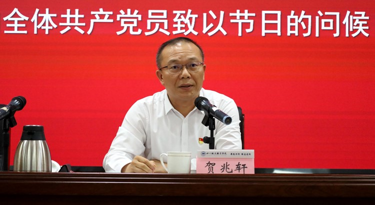 6月30日下午,学校在成都校区学术报告厅召开庆祝中国共产党成立104周年暨“两优一先”表彰大会,党委书记贺兆轩以《勇于担当 敢于胜利 进一步汇聚干事创业强大力量》为题作专题党课,党委副书记、校长赖芳主持大会。