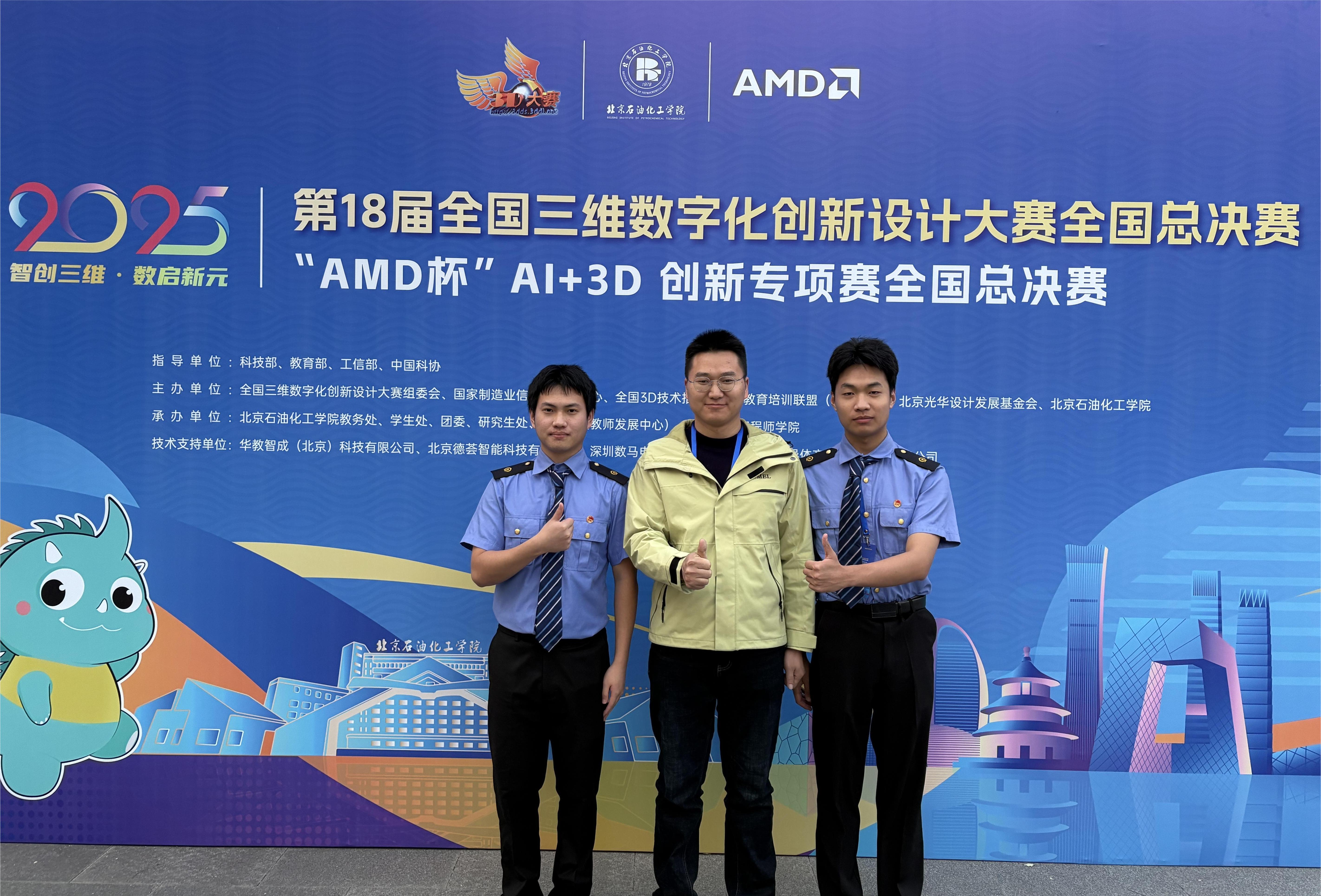 近日,第18届全国三维数字化创新设计大赛(简称“全国3D大赛”)年度总决赛“AMD杯”AI+3D创新专项赛在北京结束。我校“cake战队”凭借作品《红线之下:飞驰万里台 安危一念间》,从全国百余所高校参赛队伍中脱颖而出,荣获全国二等奖。 全国三维数字化创新设计大赛(简称“全国3D大赛”)作为国内规模最大、水平顶尖、影响力广泛的重要赛事之一,已被正式纳入全国高校学科竞赛排行榜评估体系。本届“AMD杯”AI+3D创新专项赛聚焦推动人工智能与三维数字化技术的深度融合与创新应用,吸引了全国众多高校的优秀团队同台竞技。 由我校学生陈洪亮、刘聘鑫、熊鑫、李俊熙、桂胜瑜组成的“cake战队”,在李惠群、游钱炳两位老师的指导下,团结协作、勇于突破。其获奖作品《红线之下:飞驰万里台 安危一念间》构思新颖,巧妙地将AI技术与三维建模有机融合,技术实现完整,充分展现了团队成员扎实的专业功底与出色的复杂问题解决能力,最终赢得专家评委的高度认可。