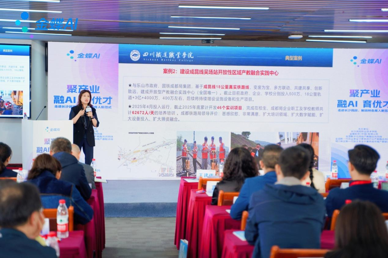 4月23日至25日,校长赖芳带队赴长沙参加“聚产业 融AI 育优才——走进长沙民政,解码特色育人新范式”产教融合专题活动。学校教务处/招生处/产教融合处、经济管理学院有关负责人随同参加。 本次活动由金蝶软件(中国)有限公司、全国数字化财经产教融合共同体、全国新一代自主安全计算系统行业产教融合共同体及湘江新区新一代自主安全计算系统市域产教联合体联合举办,湖南省教育主管部门领导、行业专家、院校代表、企业嘉宾等齐聚一堂,聚焦职教政策解读、AI赋能产教新生态、生产性实践基地建设等核心议题共商数智化时代职业教育高质量发展新路径。 研讨期间,赖芳以“聚力产教融合、促进学校高质量发展——根植行业、面向地方、对接战略、走向国际”为题分享了学校在专业建设、产教融合等方面的做法成效。她重点展示了吴场站开放型产教融合实践基地的建设运行情况。她表示,产教融合是职业院校的生命线,既要坚守“真做”底色,更要追求“做精”目标,要将行业前沿技术、企业作业规范深度融入教学全过程,一体推进“教、学、做、练”育人改革,推动产教融合从“形似”向“神合”深度跨越,切实提升学生职业精神和专业素养。