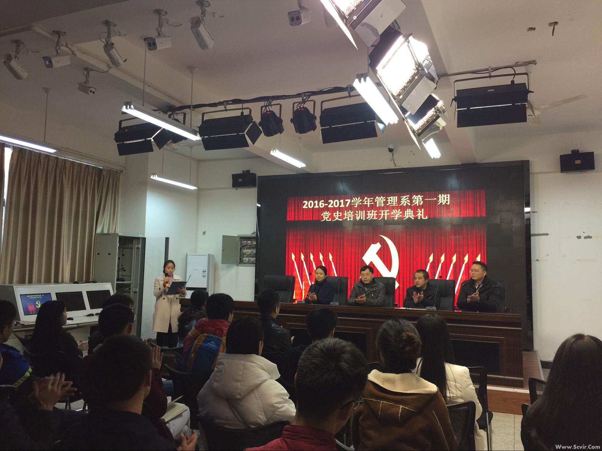 12月5日,管理系在2116实训室举行了第一期党史培训班开学典礼。此次培训班,面向管理系2015、2016级全体学生开设,共计20课时。我院易刚副院长、学生处舒铮处长、院团委朱俐书记、我系党总支郭小林书记、我系辅导员钟欣、马琴、潘腾宇老师及全体培训班学员参加了典礼。