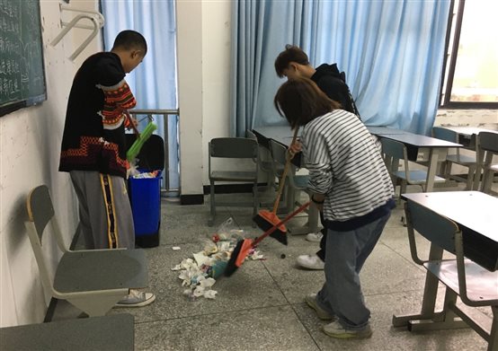 本学期我院管理的流动教室共25个,经统一部署,将26个班级统一安排,2019级六个班级分别负责工程、供电实训室卫生,工程19TT1/2/3班由吴可老师安排,供电19T1/2/3班由周小红老师安排。其余20个班级分为10组,每组90-100人,分别由2位班主任分配工作并指导学生进行劳动,每组每天需打扫25个教室,两周一次。由党总支书记、辅导员、班主任、学生会成员进行检查,最终班主任依据检查结果给出学生当次劳动教育成绩。