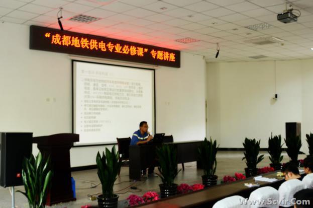 在播放了成都地铁公司形象宣传短片后,黄老师详细地介绍了公司的基本情况、企业文化和岗位要求。结合岗位实际,着重讲解了地铁牵引供电系统、地铁变配电系统的构成和地铁供电方式。授课内容条理清晰,深入浅出,理实结合,授课效果良好。
