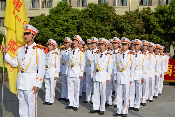 由26名队员组成的系仪仗队是我系运动会方队的一大亮点,集中展示我系积极向上、团结一致的精神风貌,整齐划一的步伐赢得了广大师生好评。除了作为运动会的护旗方队,仪仗队还担任每月升旗站岗工作,是每个班级的排头兵。