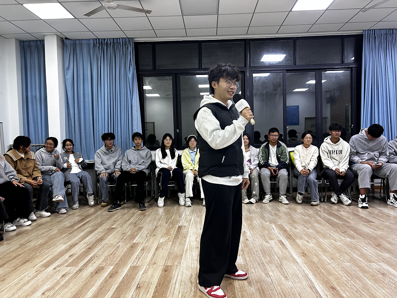 活动以“破冰互动”拉开序幕。班委们通过“ABB格式名字介绍”环节迅速拉近距离,“笑嘻嘻的小王”“傻乎乎的小李”等趣味昵称让现场笑声不断。随后的“捏手指游戏”将气氛推向高潮,大家在紧张与放松的交替中培养默契,不少同学感慨:“原来快速反应和团队协作能这么有趣!”而“大风吹”环节则考验观察力与行动力,班委们根据指令迅速调换座位,现场秒变“欢乐海洋”。
