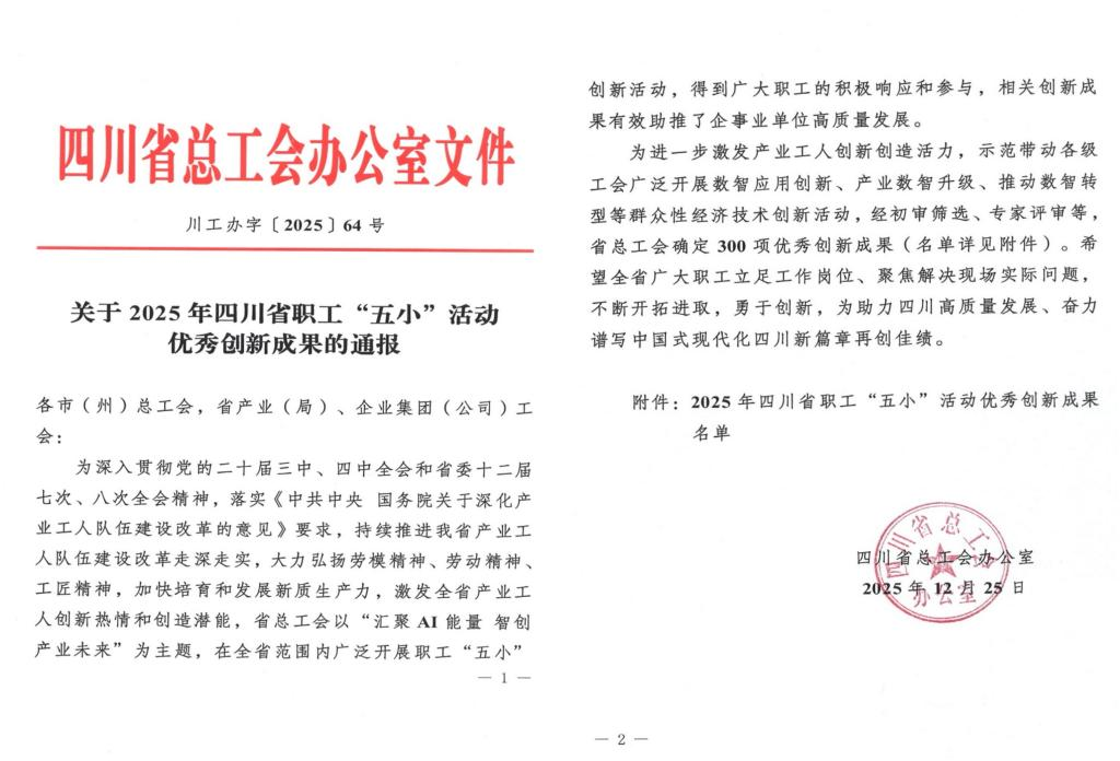 此次获奖是学校职工践行工匠精神、推动产业数智升级的生动实践,也是学校深化“五小”育人模式、激发师生创新活力的重要成果。学校将以此为契机,进一步深化产教融合,通过“五小”活动平台培育更多高素质技术技能人才,为四川高质量发展注入创新动能。