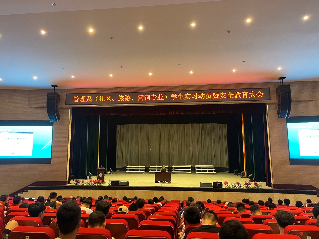 7月8日下午19:00,管理系在大礼堂召开社区、旅游、营销专业学生实习动员暨安全教育大会。副院长吴斌、系党总支书记郭小林以及毕业班班主任、实习指导教师参加了本次会议。