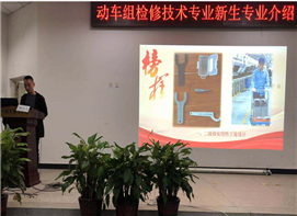 图二、三:霍芳霄老师对动车组检修技术专业进行介绍
