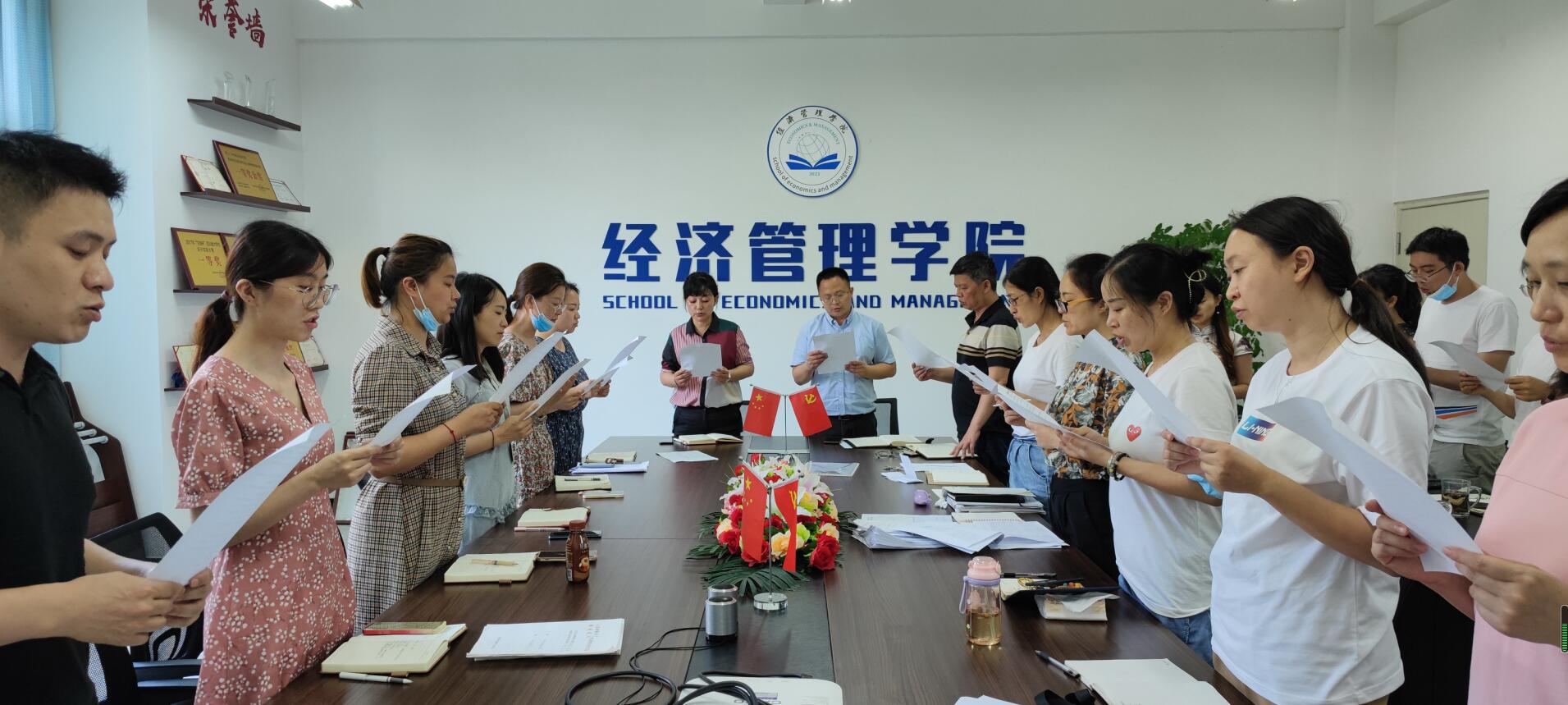 6月27日,经济管理学院党总支组织召开了师德师风建设“大学习”暨《教师师德承诺书》签订会议。在院的学院领导、教职工参会,总支副书记张强主持会议。