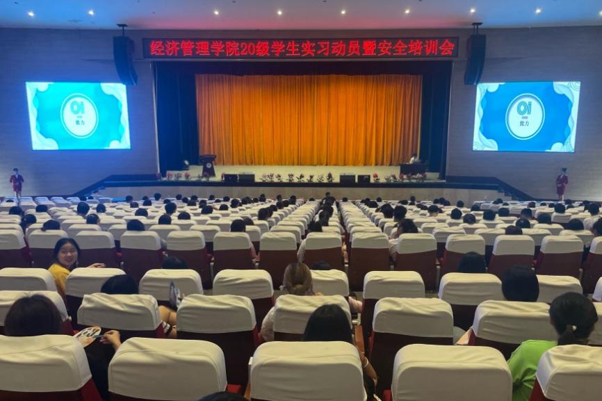 为规范和加强学院学生岗位实习工作,维护学生实习权益,保障学生实习安全,提升岗位实习效果,经济管理学院于6月30日在大礼堂隆重召开学院20级实习动员暨安全培训会。学院院长文容、党总支副书记张强,各教研室负责人、实习指导教师以及20级全体学生参会。