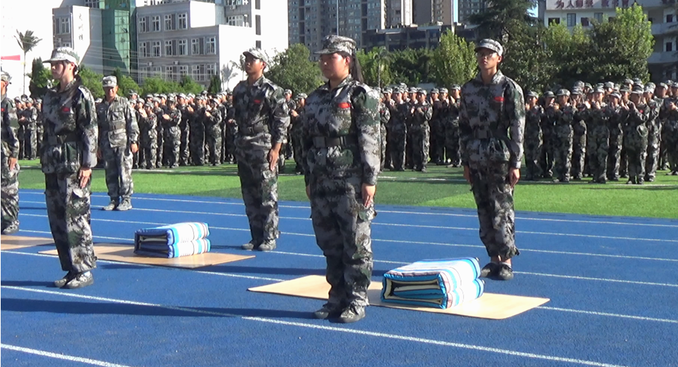 2021级全体新生进行了军训会操、叠军被等一系列军训项目的展示。在军训会操环节,全体新生以班级为单位,依次走过主席台。同学们踏着铿锵有力的步伐,眼神中透露出坚定,飒爽的气势展示着川铁职院学子的自信。标准的动作、威武的气势、响亮的口号,展现了2021级新生不怕吃苦、奋发进取的良好精神风貌。在内务展示环节,随着口令响起,学生们开始紧张地忙碌起来,一床床看似柔软的被子在同学们的手下变得板板正正,有棱有角,就像是绿茵场上站着的“迷彩”们,在经过百般磨练后就如同凤凰涅槃,重铸新生,短短三分钟时间里,同学们就叠出了一个个“豆腐块”,充分展现了我校学生一丝不苟、追求卓越的品质。