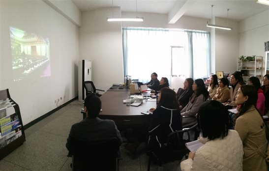 3月25日下午,思政部主任朱红组织思政课全体专兼任教师在2404办公室学习了习总书记在学校思想政治理论课教师座谈会上的重要讲话。