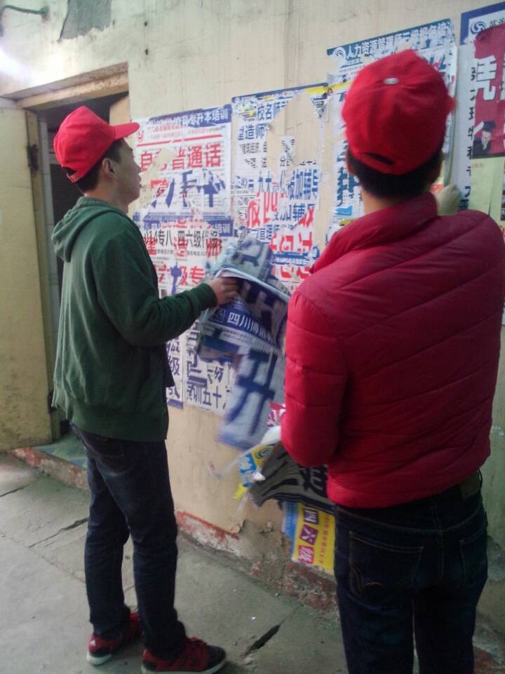 中午,院团委、学生会、青协志愿者们在蜀英大厦楼前集合,按照分工分别走进校园的角落,清理校园小广告、清理花坛内的垃圾等。活动中,大家自带小刀、剪刀、水壶、刷子等工具对乱张贴在宣传栏、路灯杆、食堂门口的宣传海报、兼职广告、各种辅导培训班等泛滥广告进行清理。同学们有的用刀片刮小广告,有的扫地,有的用长铁夹清理花丛中的垃圾。在大家的共同努力下,杂乱的广告、小垃圾“走进了”垃圾桶!