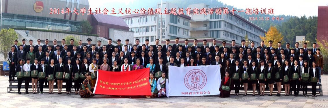 为深入贯彻落实团中央《“青年马克思主义者培养工程”实施纲要》的要求,进一步推动我省“青年马克思主义者培养工程”的深入开展,深化青年学生对中国特色社会主义理论体系及社会主义核心价值观的理解,提升团学干部创新意识和工作能力。近日,由共青团四川省委、四川省学生联合会共同主办的第五期“四川省大学生骨干培养学校”暨第三期藏区“9+3”学生骨干培训班先后在四川大学锦江学院和江西吉安全国青少年井冈山革命传统教育基地开展为期十天的培训活动。共青团四川省委书记刘会英同志出席开学典礼并作重要讲话。我院学生会主席龚城同学与来自全省106所高校的大学生骨干、19个市(州)的藏区“9+3”学生骨干参加了本次培训。