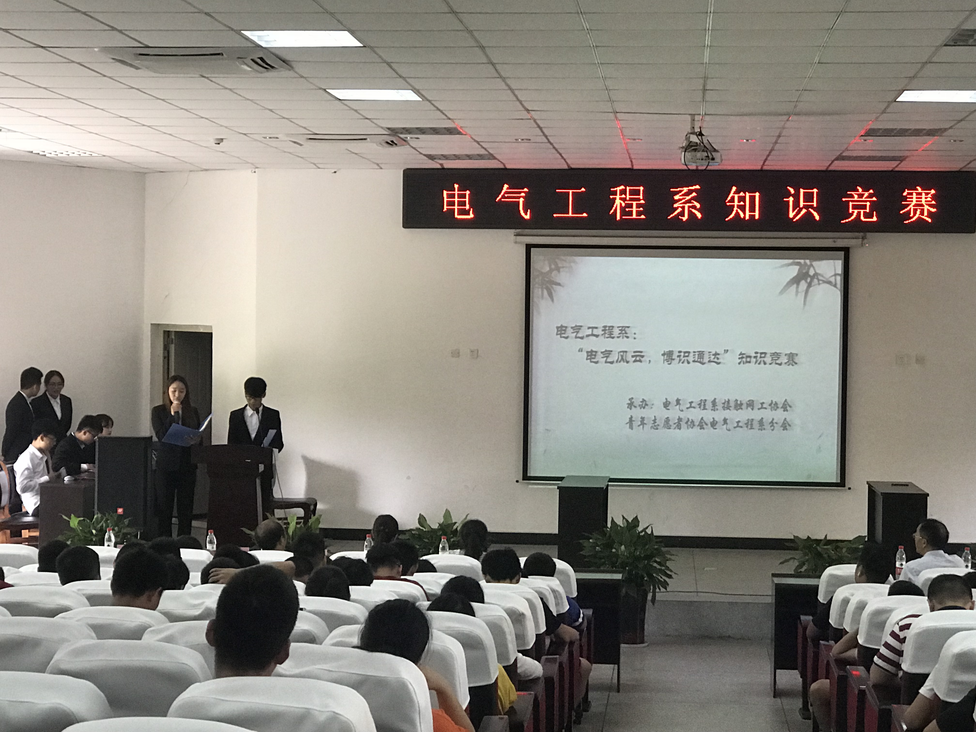 2018年6月27日,青年志愿者协会电气工程系分会和接触网工协会在学术报告厅联合举办了第二届“电气风云,博识通达”学科知识竞赛。此次决赛,有幸邀请到了电气工程系主任程波老师、副主任傅永华老师、书记张果老师、我系辅导员及各学科老师也来到现场,担任本次比赛的嘉宾。
