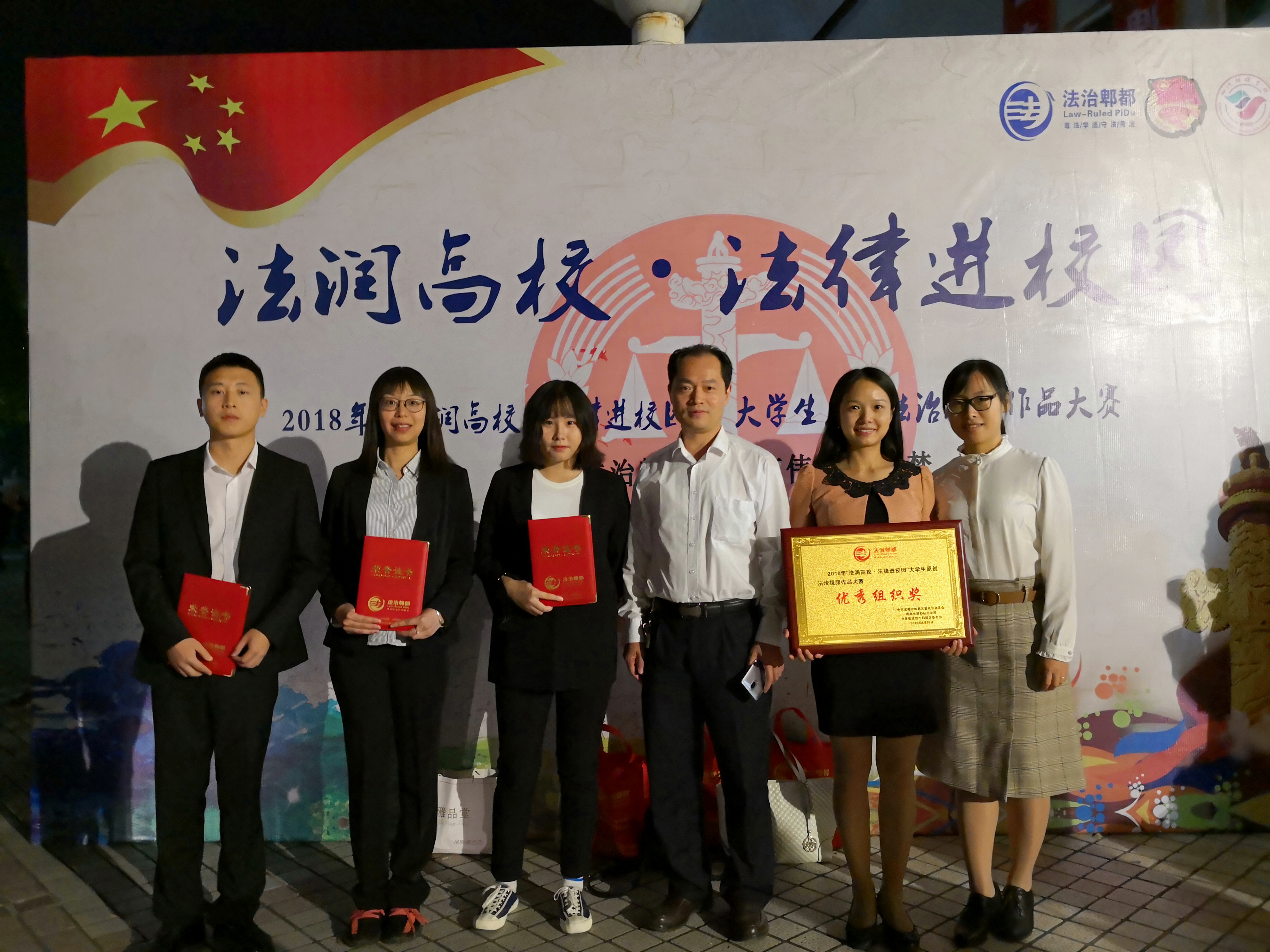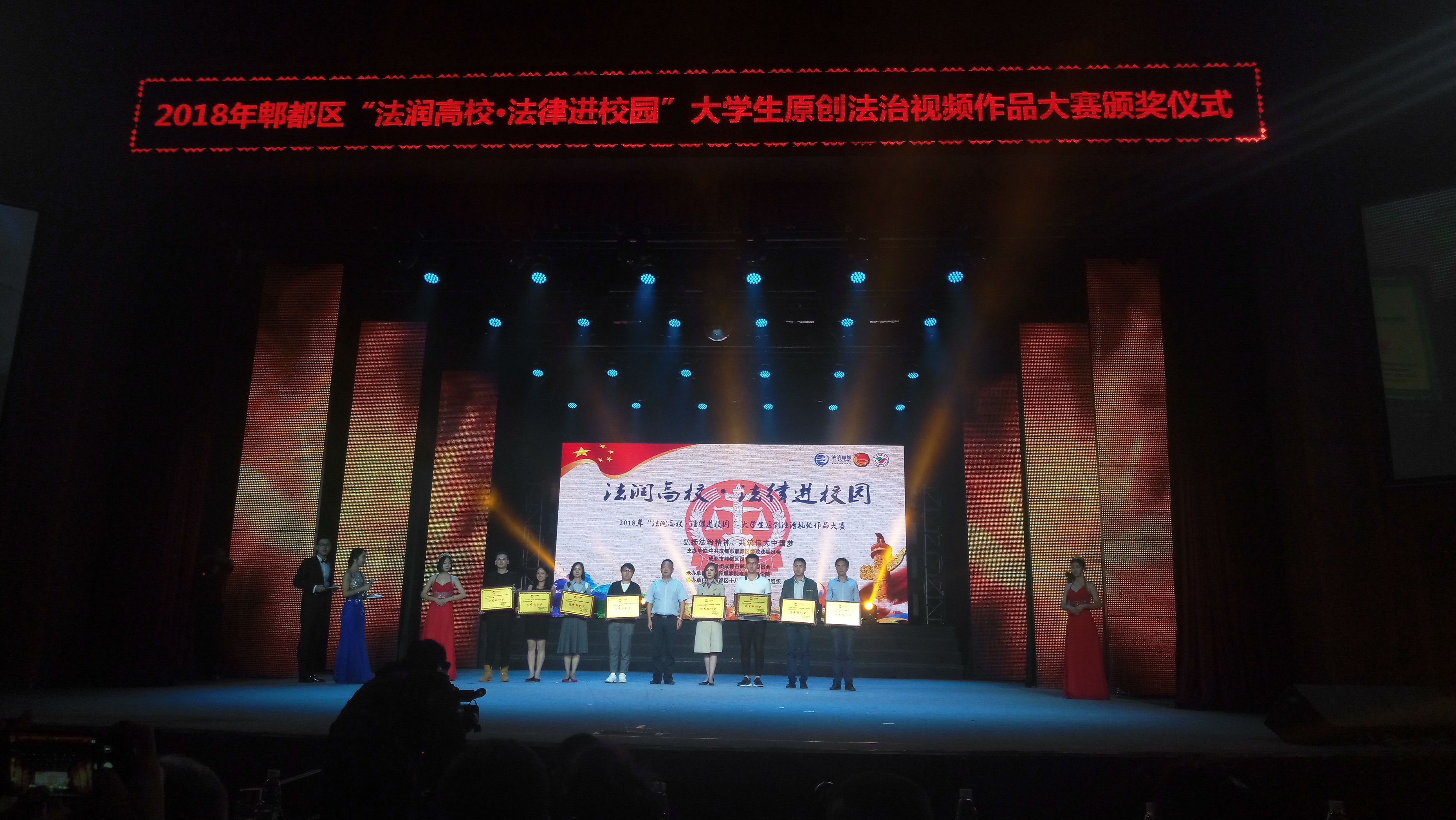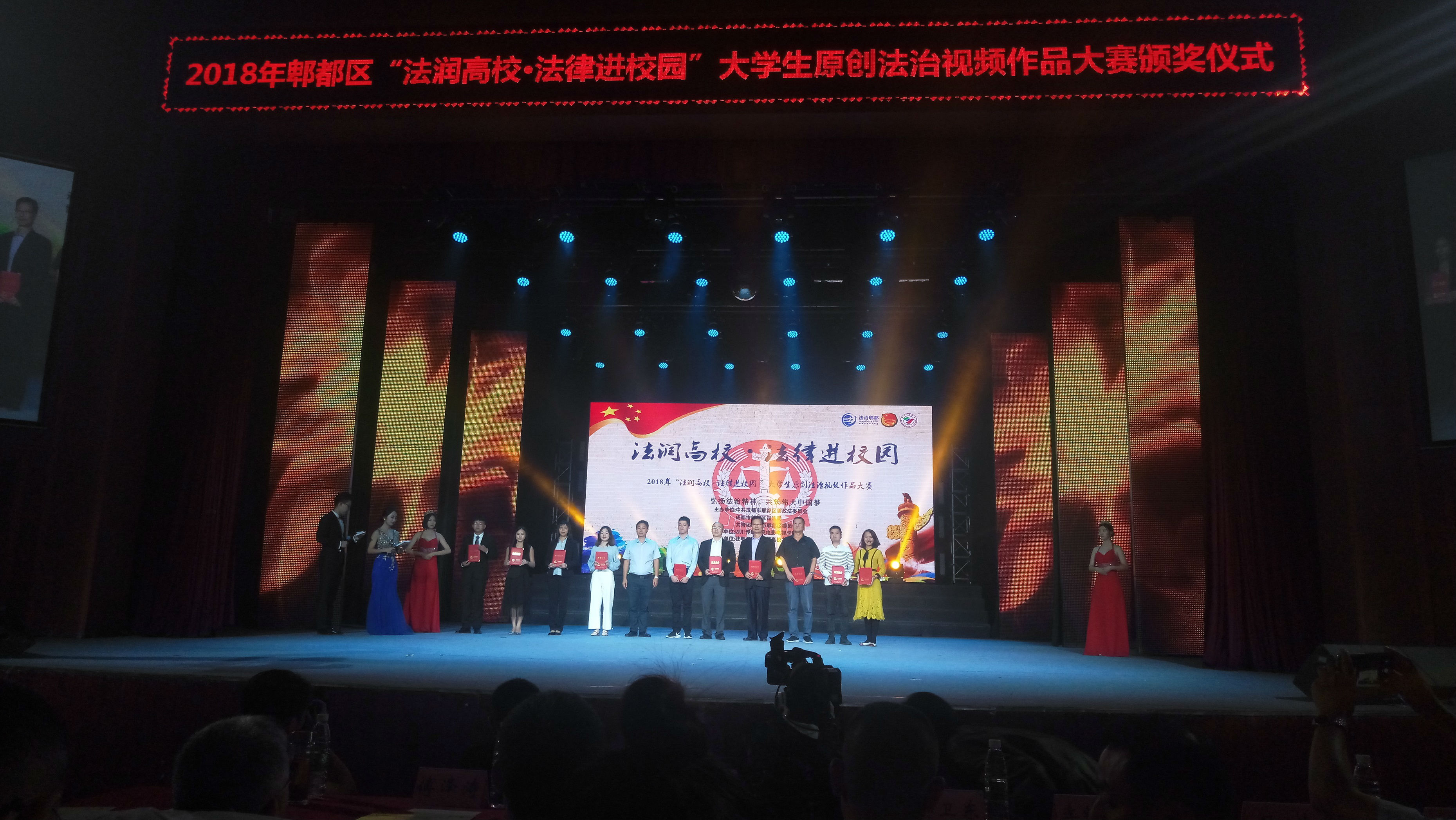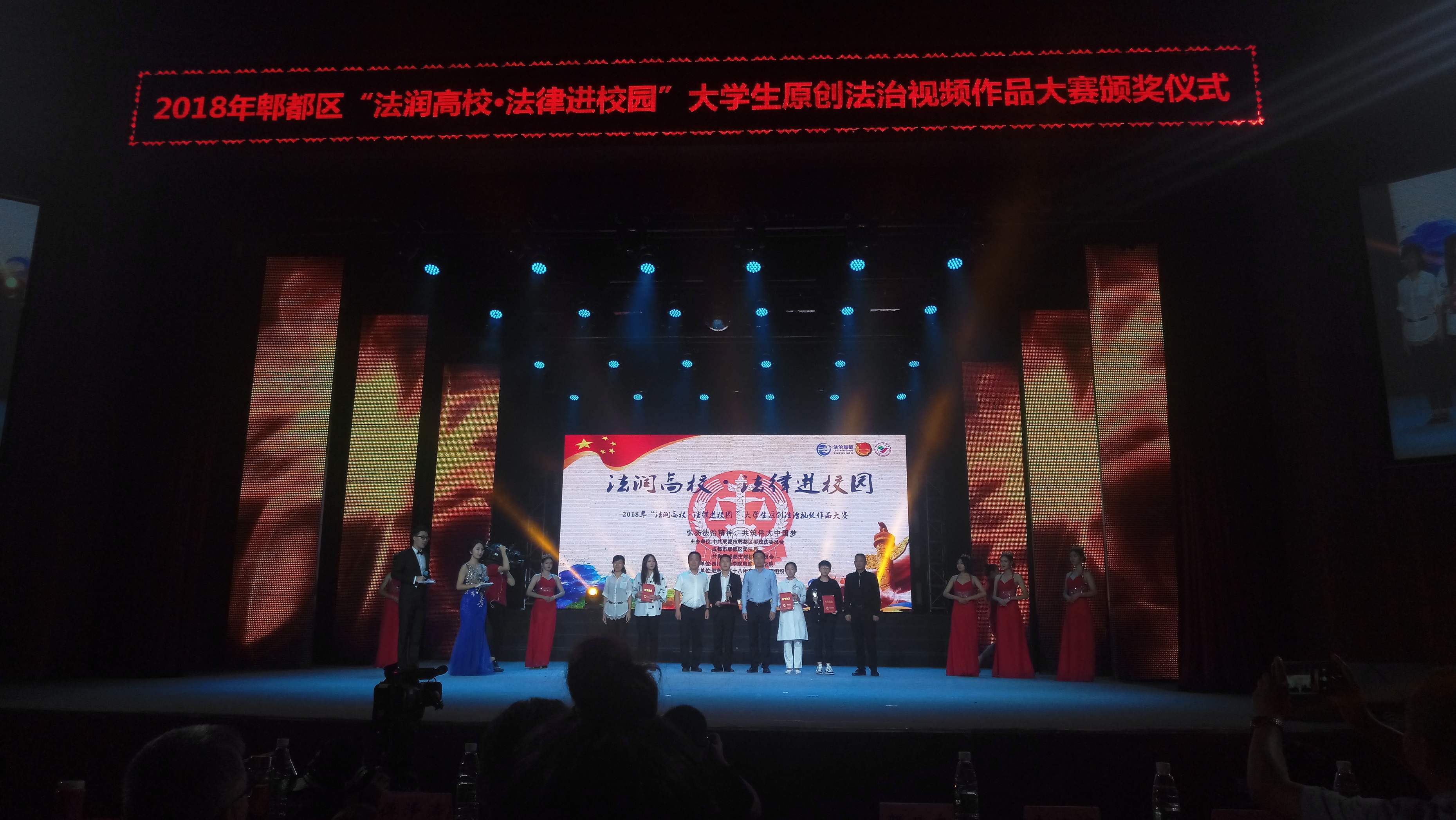 为进一步深化“法润高校”法治宣传教育工作,增强大学生学习宪法、尊崇宪法的法治理念,夯实“七五”普法基础,有序推进依法治校各项工作。2018年9月26日,由中共成都市郫都区委政法委员会、成都市郫都区司法局、共青团成都市郫都区委员会主办,四川传媒学院承办,驻郫都区十九所高校共青团组织协办的“2018年‘法润高校·法律进校园’大学生原创法治视频作品大赛”颁奖仪式在四川传媒学院圆满落下帷幕。本次大赛中,我院荣获“优秀组织奖”,刘小杨老师和万力维老师荣获“优秀指导教师奖”,铁道信号自动控制17T2班羊海林同学荣获“最佳表演奖”。