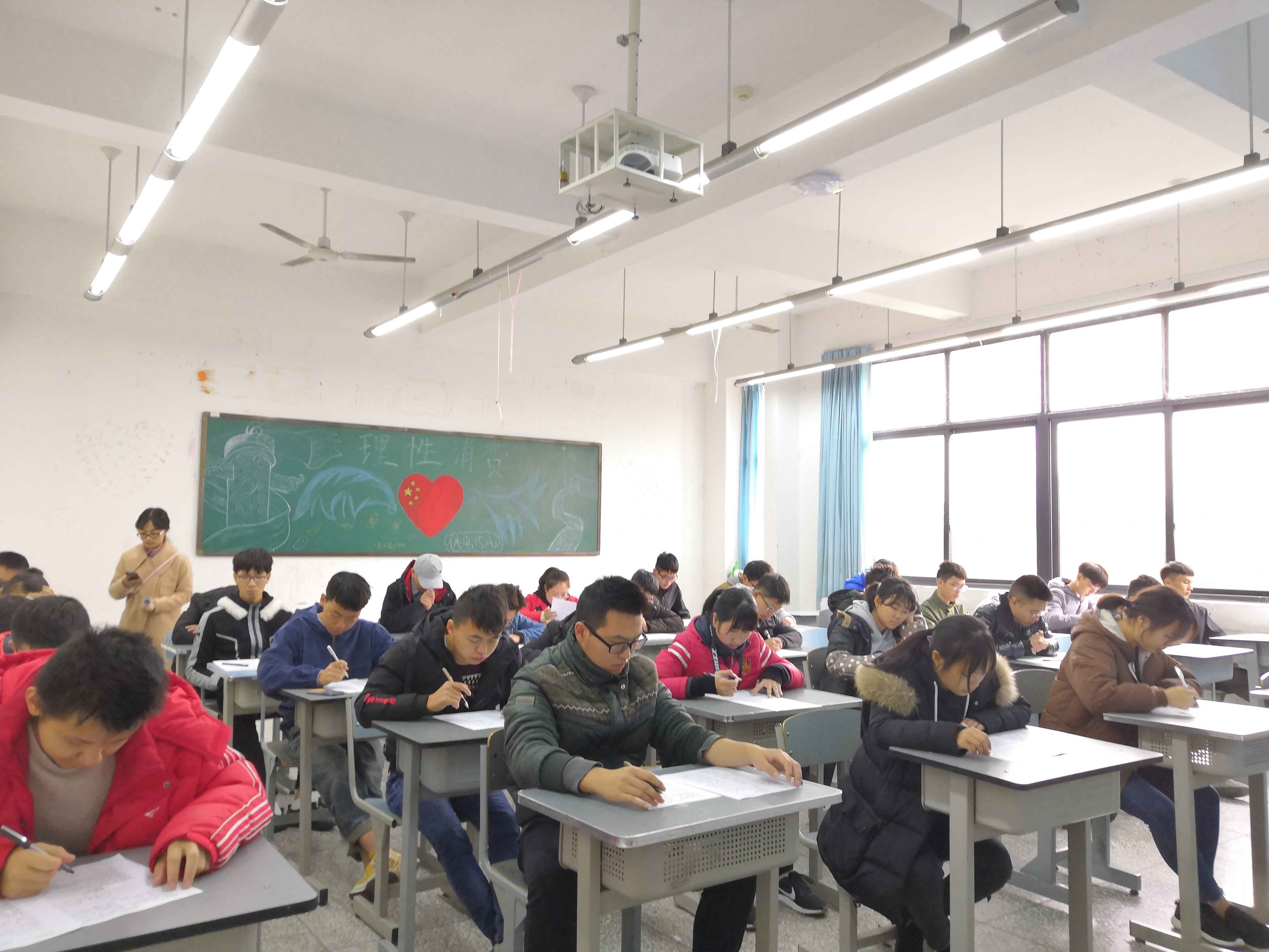 本次初赛由两个系交叉出题,交叉监考。比赛前,工作人员提前来到教室布置考场,积极地开展工作。竞赛中,双方的参赛选手非常认真地对待这次初赛,充分发挥着自己的聪明才智,沉着冷静地应对,这是一场没有硝烟的角逐,但考试的气氛却异常紧张。