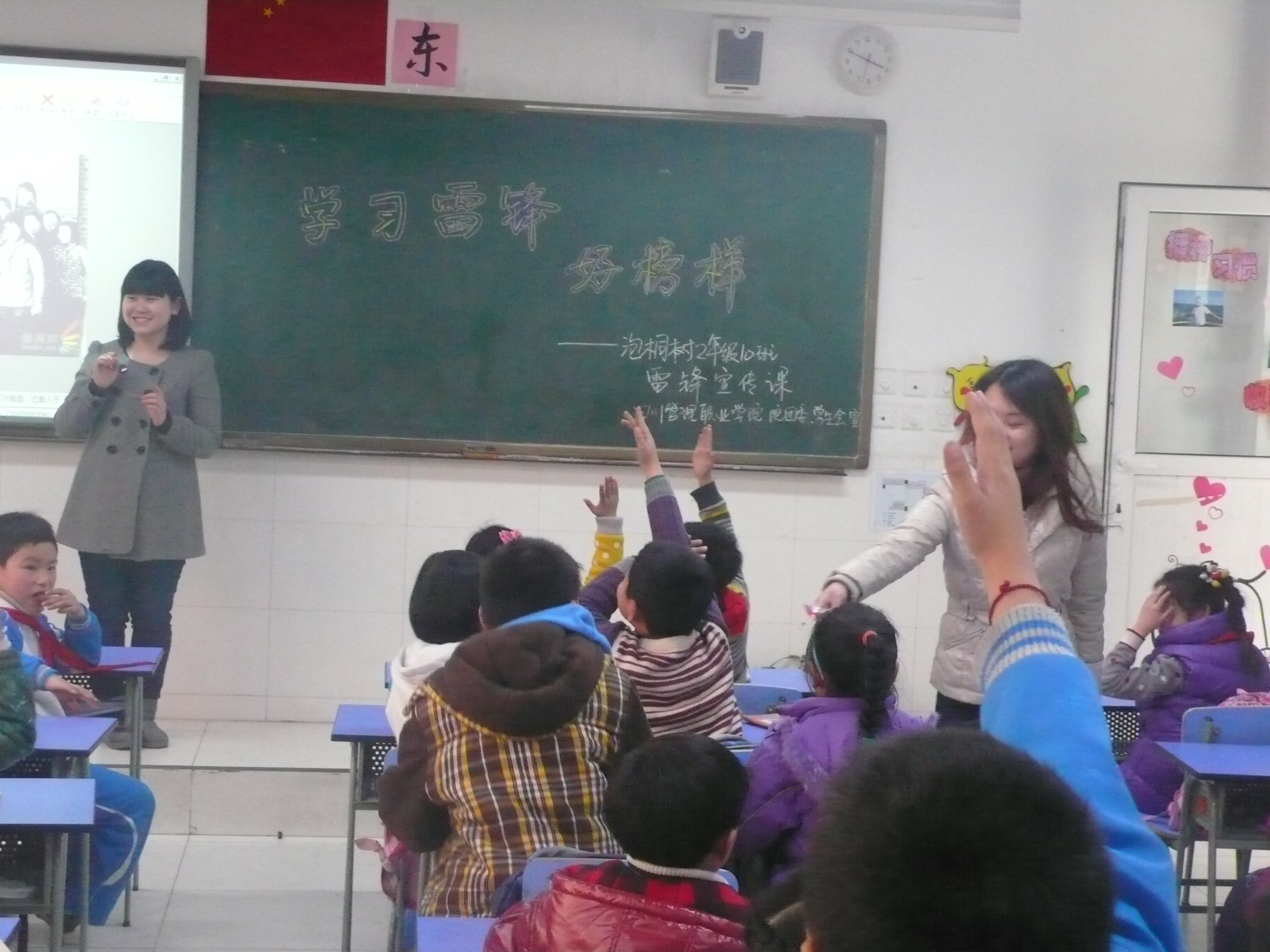 为了在新时期下弘扬雷锋精神,进一步加强未成年人思想道德建设,在雷锋活动月之际,院团委组织部分学生干部在泡桐树小学西区积极开展“雷锋精神伴我成长”的主题宣传活动。同学们向泡小的小朋友介绍了雷锋叔叔的光荣事迹,纷纷传唱学习雷锋之歌,并号召小朋友们从身边的小事做起,从自己做起,向雷锋叔叔学习,做一个乐于服务别人的人。同学们希望通过自已的实际行动让小朋友们了解雷锋叔叔,学习并传承雷锋精神。