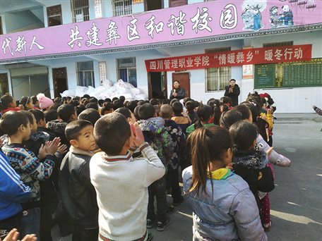 12月18日至19日,按院党委工作安排,副院长易刚、党委办公室副主任张强、电气工程系党总支书记张果一行,在马边县教育局总督学罗相东的陪同下,到马边县碧桂园职业中学、白家湾小学、沙腔乡中心校开展“情暧彝乡”暖冬行动。