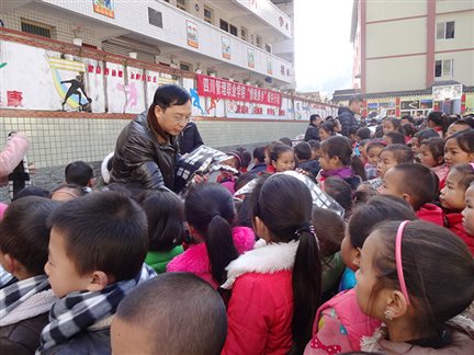 在沙腔乡中心校“情暖彝乡”暖冬行动捐赠仪式上,易刚一行为830余名学生送上围巾、手套和袜子御寒用品,将真情关怀送到彝乡学子的心坎上。