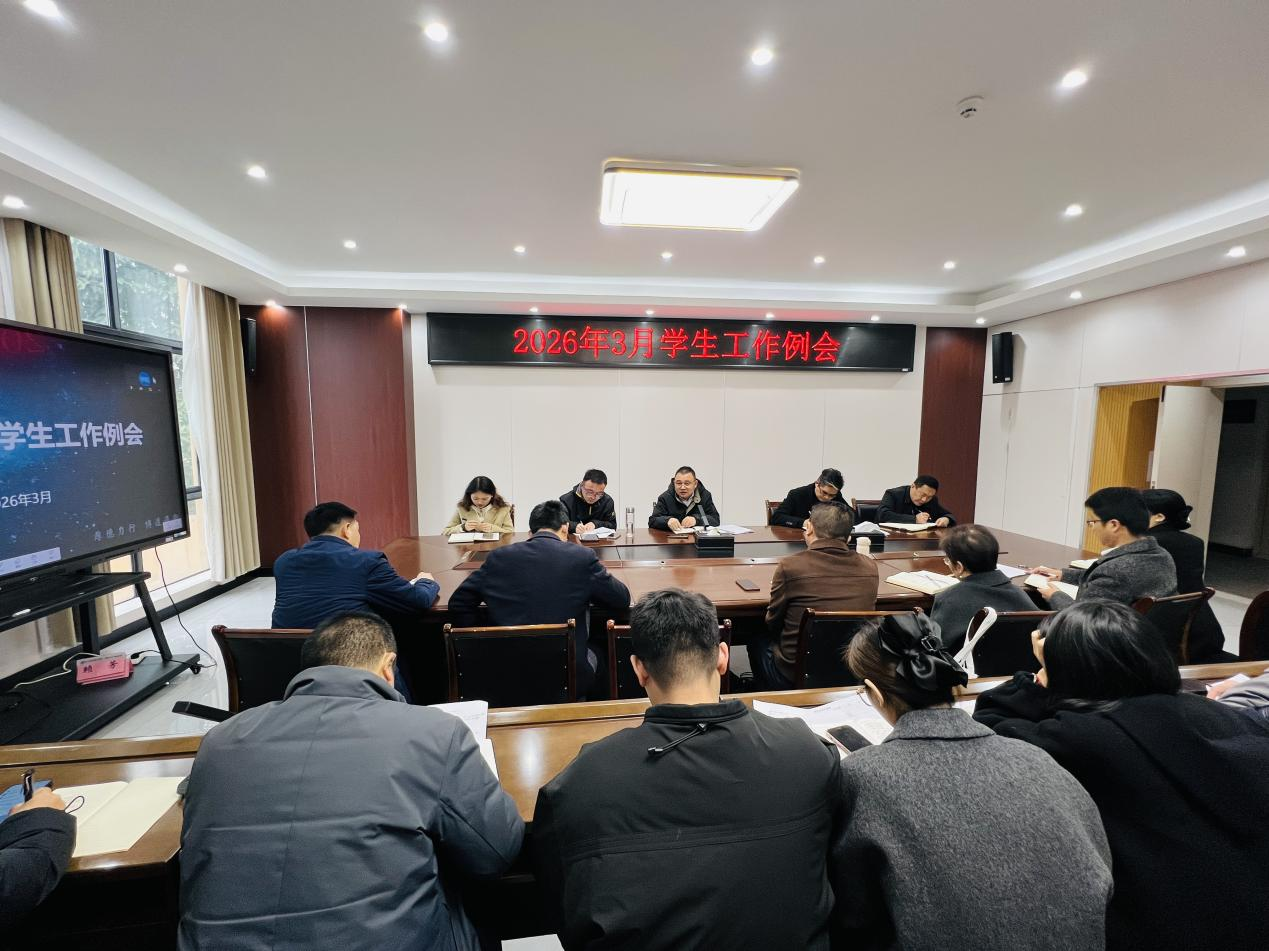 春启新程,实干为要。3月2日上午,我校2026年春季学期第一次学生工作例会在行政楼第三会议室召开。会议全面总结新学期开学以来学生工作推进情况,系统部署下一阶段重点任务,为新学期学生工作高质量开展筑牢基础。学校党委委员、副校长代学灵出席会议并作总结讲话。党委学生工作部、校团委相关负责同志及内设机构负责人,各二级学院、内江校区党总支书记(副书记),驻校干部,全体辅导员参加会议。会议由党委学生工作部部长王文杰主持。
