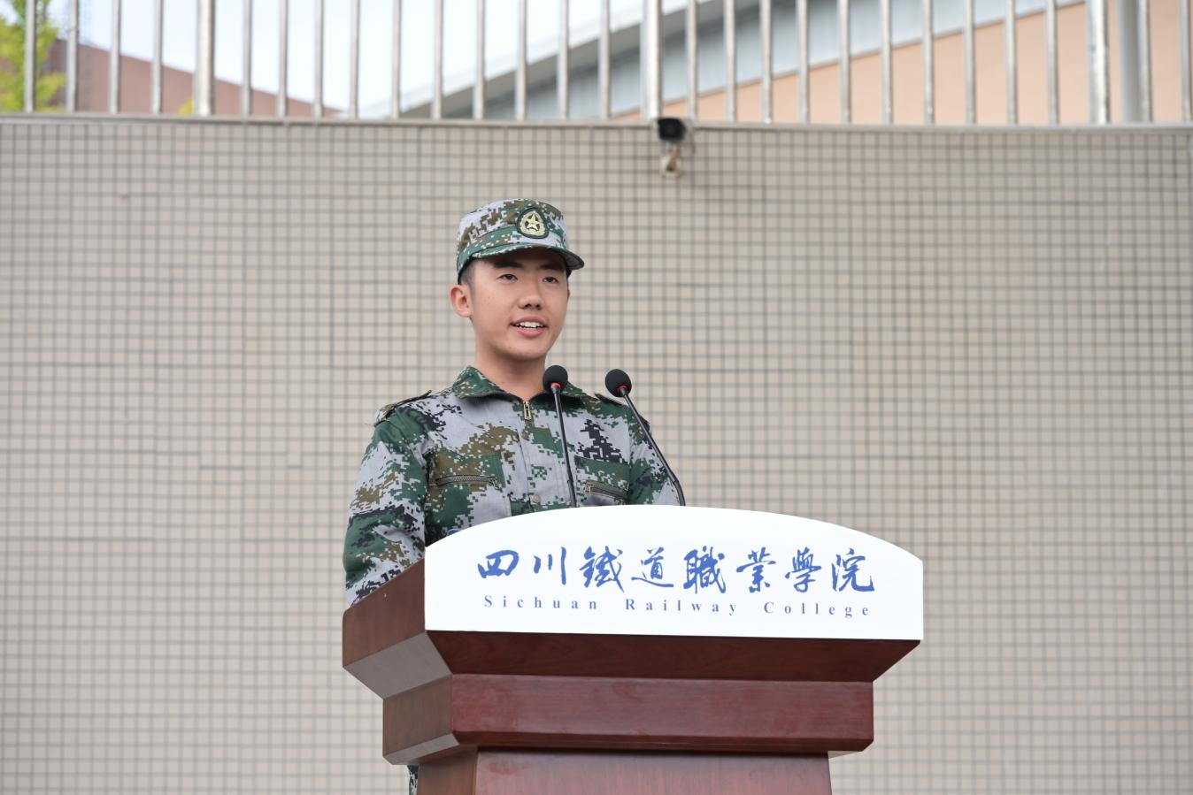 军训标兵代表、铁道机车运用与维护25T4班的梁刚诚同学发言,向学校领导、老师和教官表达了最衷心的感谢。他表示,14天的军训磨炼了超越自我的坚忍意志,汇聚了团结一心的集体力量,并向全体新生发出号召,要将“军人气质”融入血脉,以抗战精神为指引,努力成为堪当民族复兴重任的时代新人。