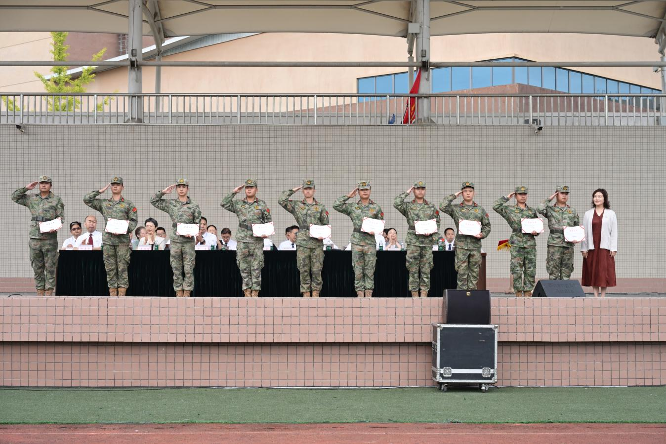 会上,主持人宣读了《关于表彰2025级新生军训优秀集体和个人的决定》,与会校领导为获奖集体和个人代表颁发了荣誉证书。