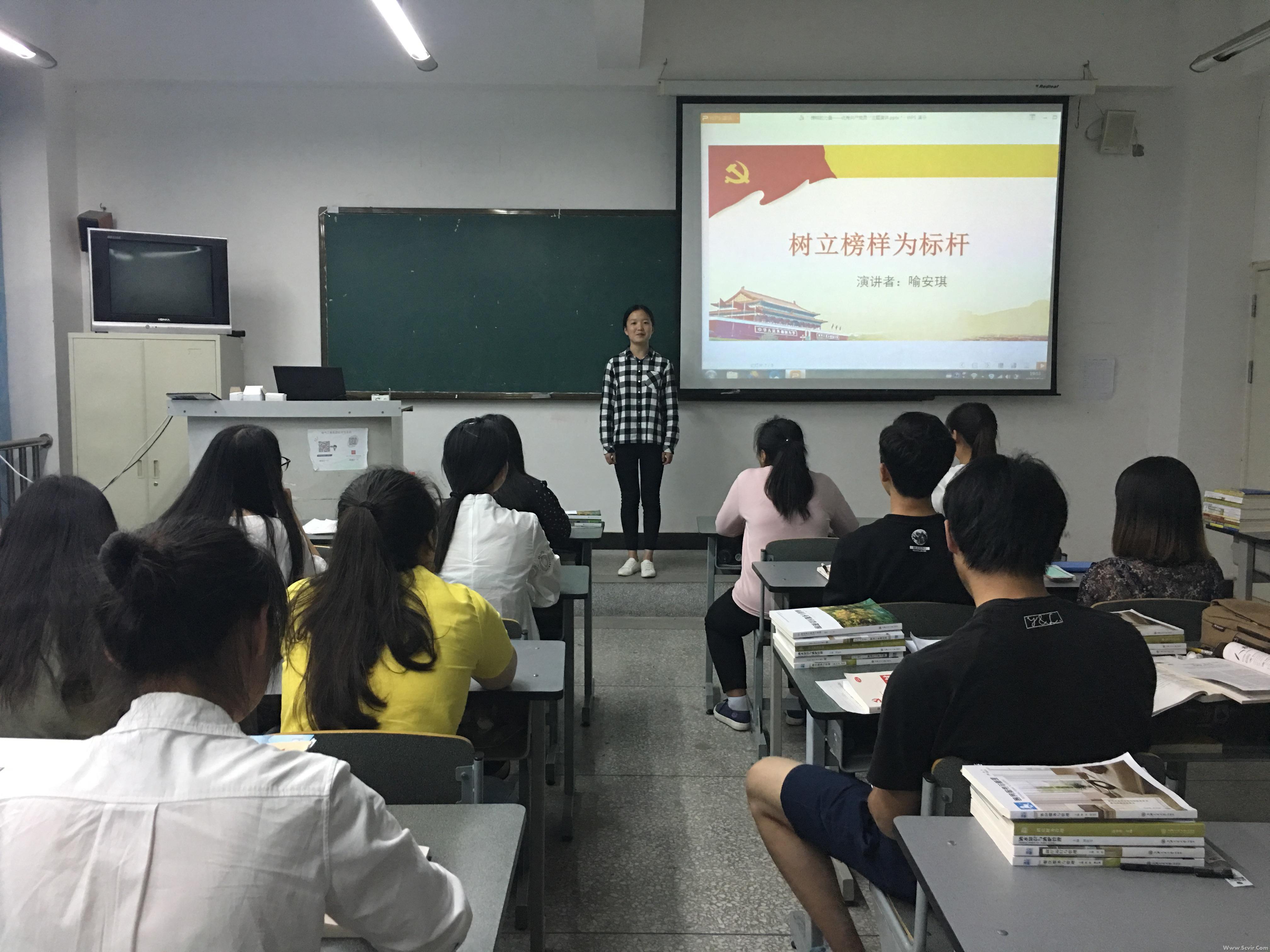 为继续深入推进我院“两学一做”学习教育活动,以身边先进典型为榜样,激励入党积极分子,培养后备力量,2017年5月1日晚,管理系在2513教室举办了“榜样的力量”主题演讲,辅导员马琴老师、第十三期入党积极分子培训班第五组成员参加了此次活动。